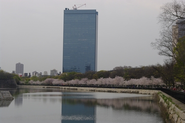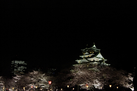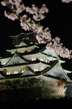 大阪城の桜の夜間ライトアップです